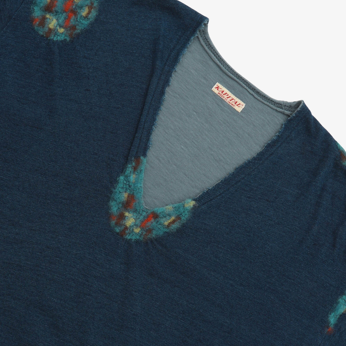 K1604LC803 Womens Wool Patch V Neck Tee by Kapital.