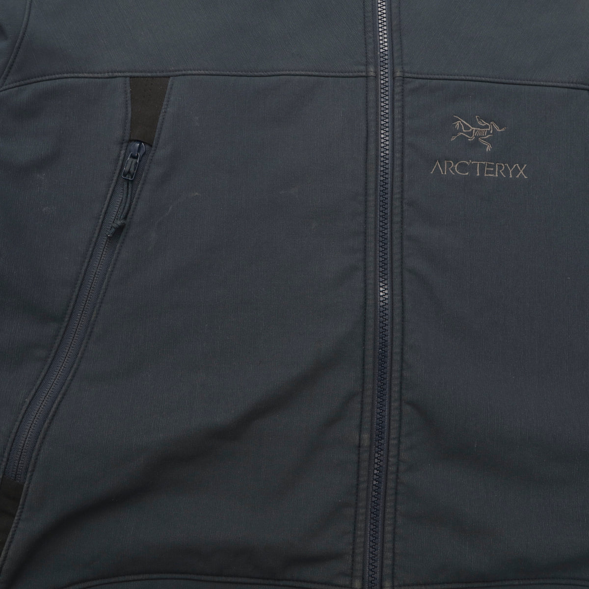 Gamma SV Softshell Jacket by Arcteryx. Stains and wear throughout, as pictured.