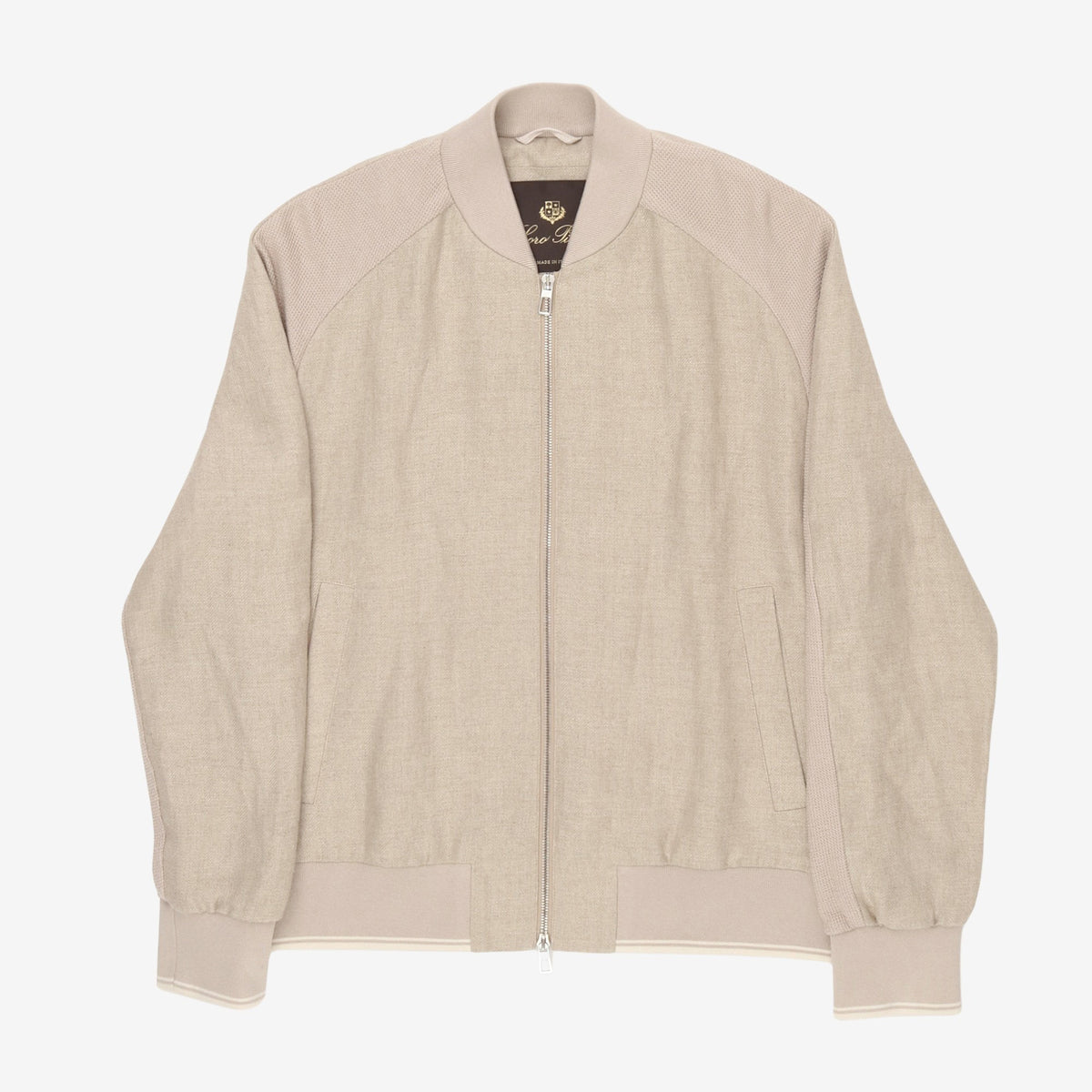 Panelled Herringbone & Waffle-Knit Linen Bomber Jacket by Loro Piana.