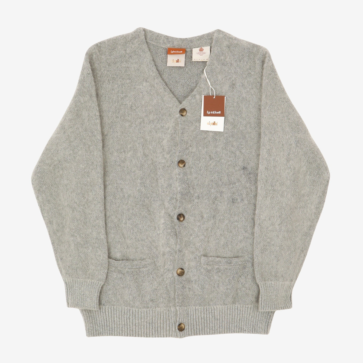 Mohair Knitted Cardigan by Lyle & Scott x Oi Polloi. New with tags. Some small damage from storage as pictured, not noticeable when wearing.