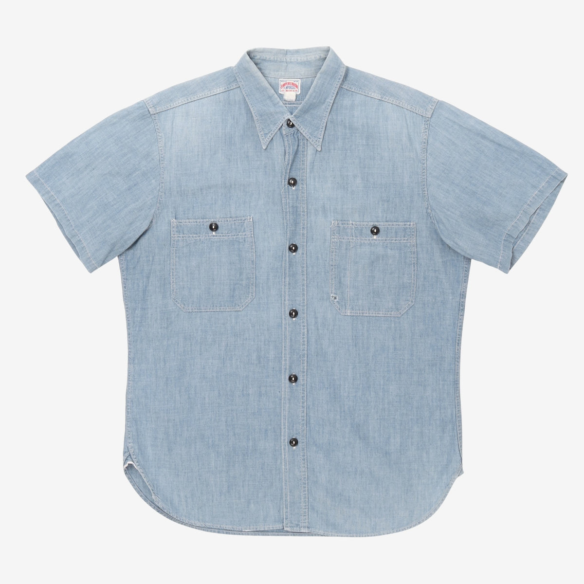 8HU Chambray Shirt SS by The Real McCoys. Small hole on front pocket, as pictured.