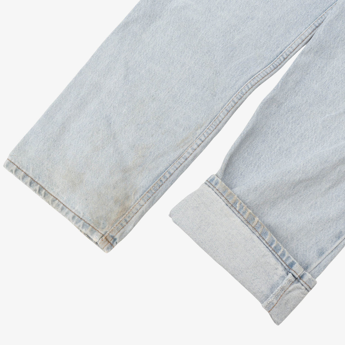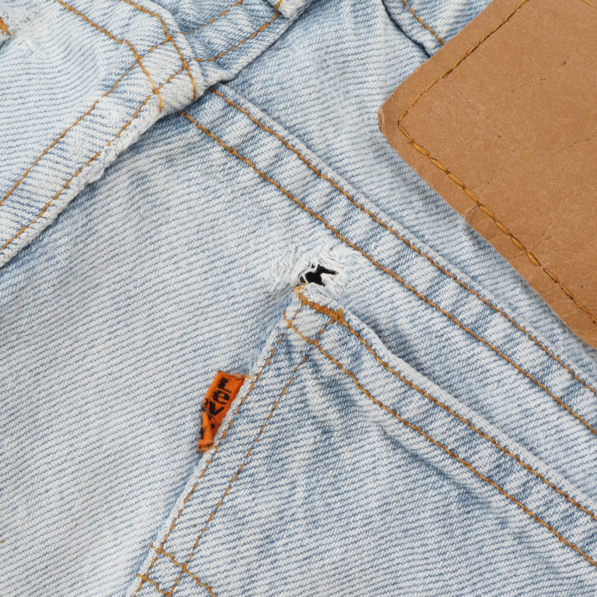 Vintage 501s Orange Tab by Levis. Some discolouration and a hole to the back pocket as pictured.