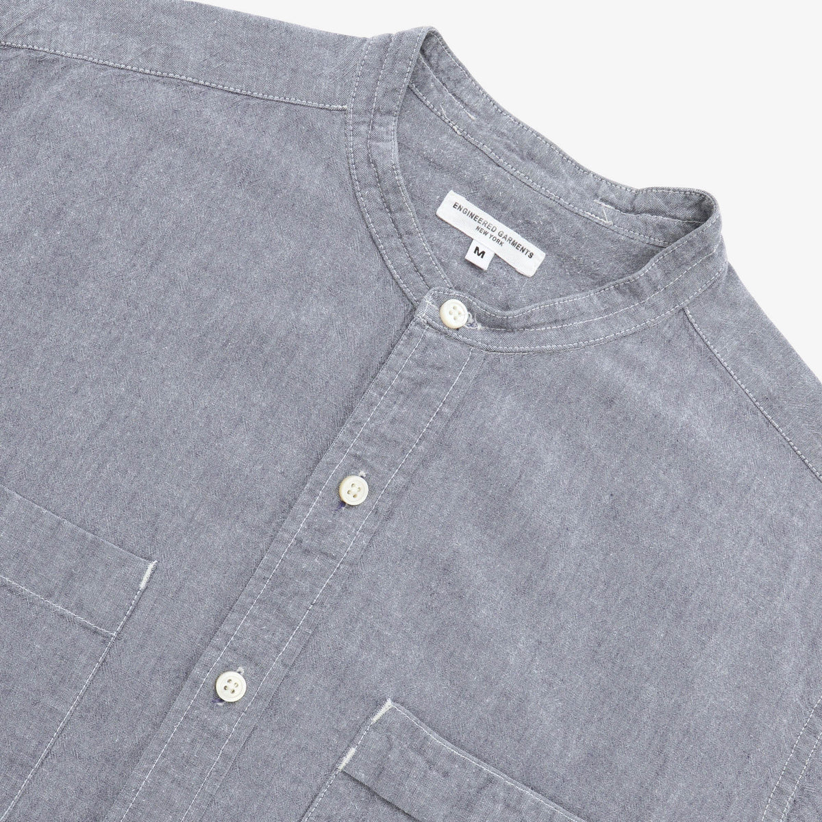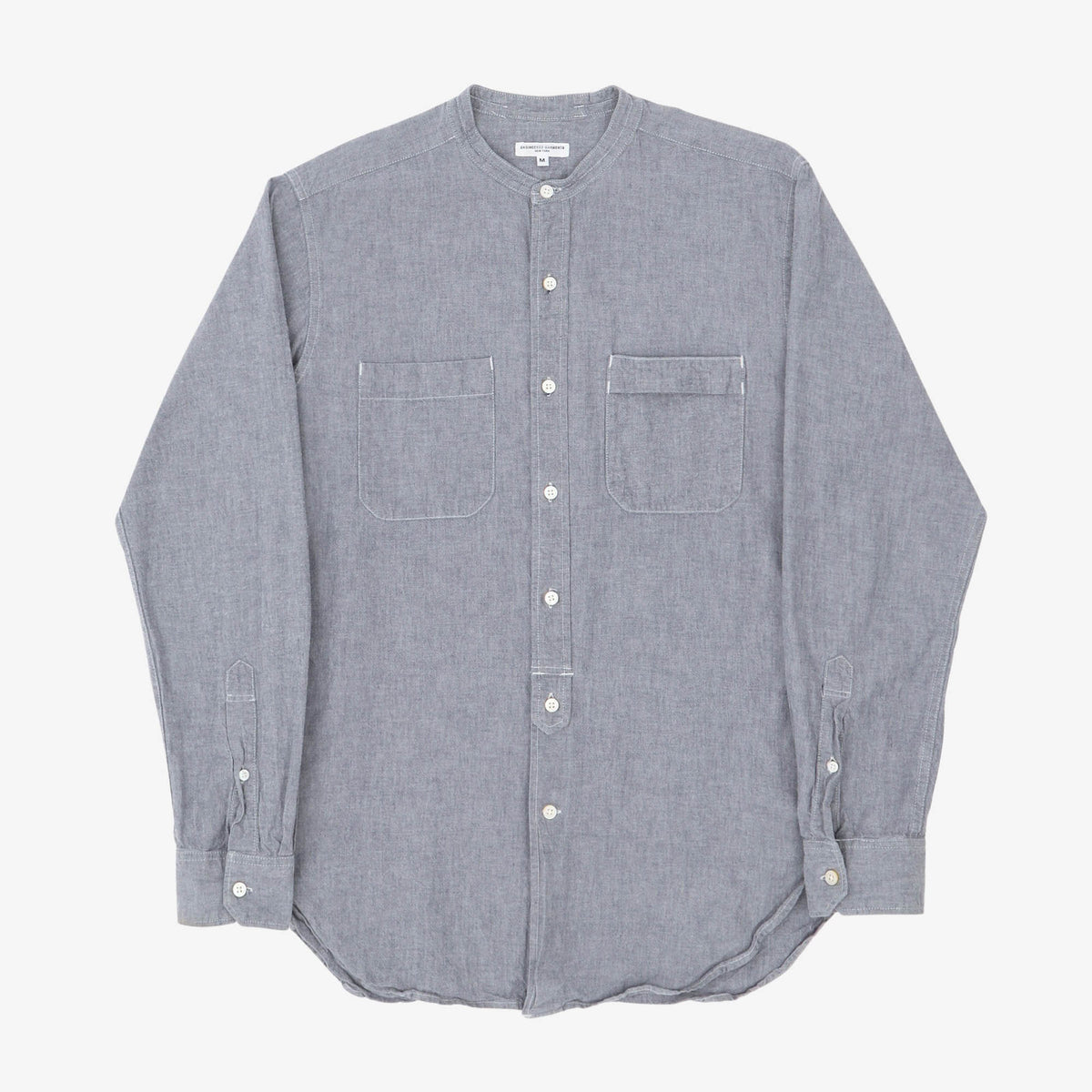 Collarless Chambray Shirt by Engineered Garments.