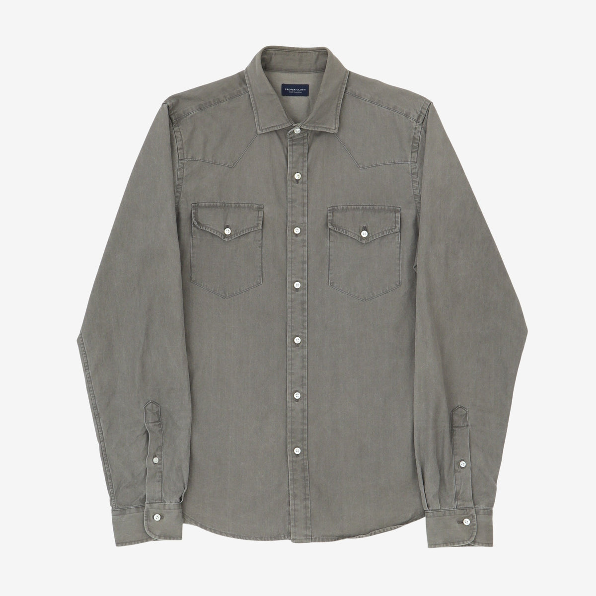 Bespoke Italian Denim Western Shirt by Proper Cloth. No size label, please refer to the size guide for measurements.