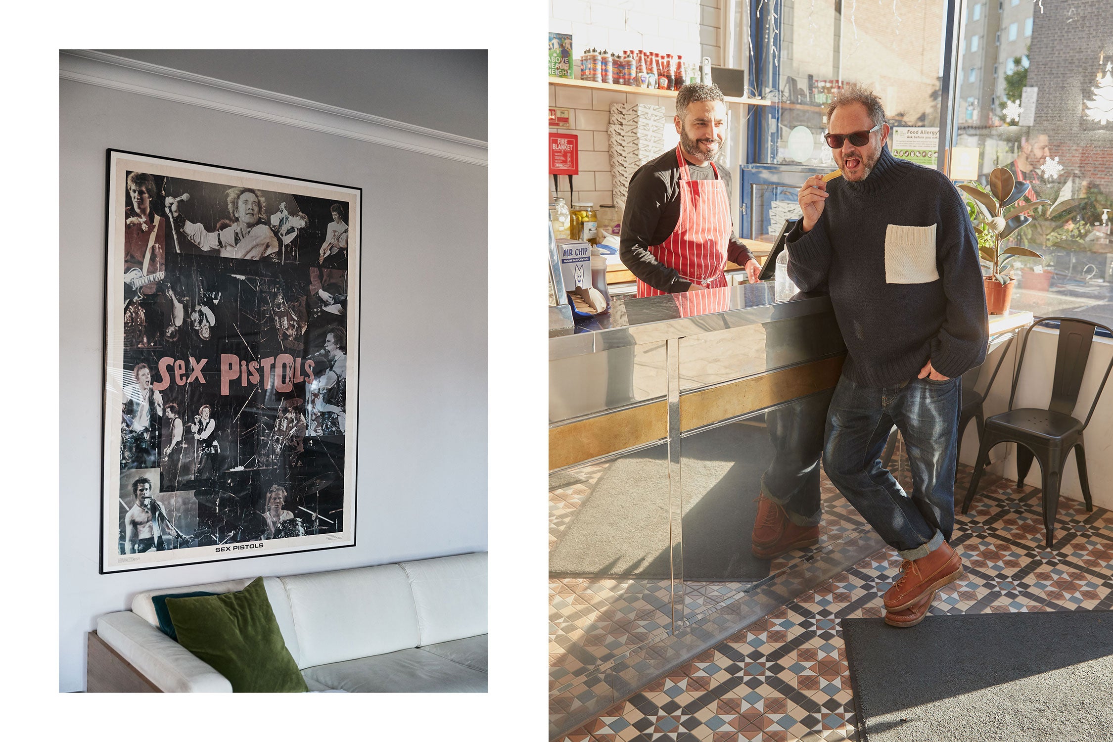 We took a few shots in the local park — it wasn’t long before you found someone you knew. Heading back to your home we found Nemo’s, a chippy that you raved about, chatting with the owner. Is London home for the foreseeable? What are some of your favourite haunts...