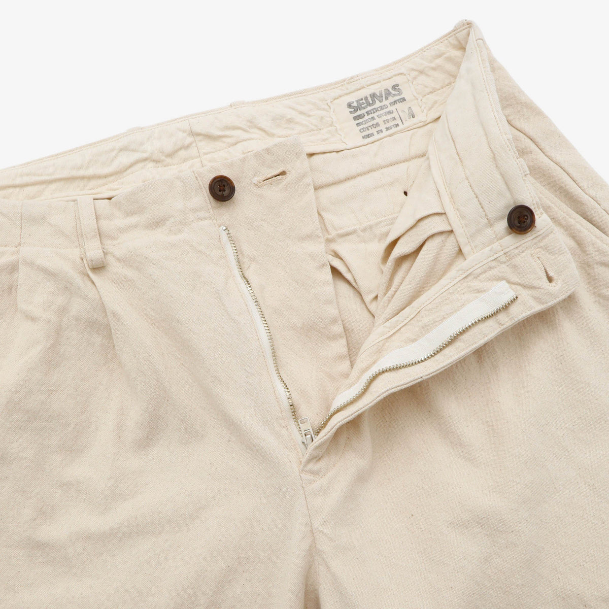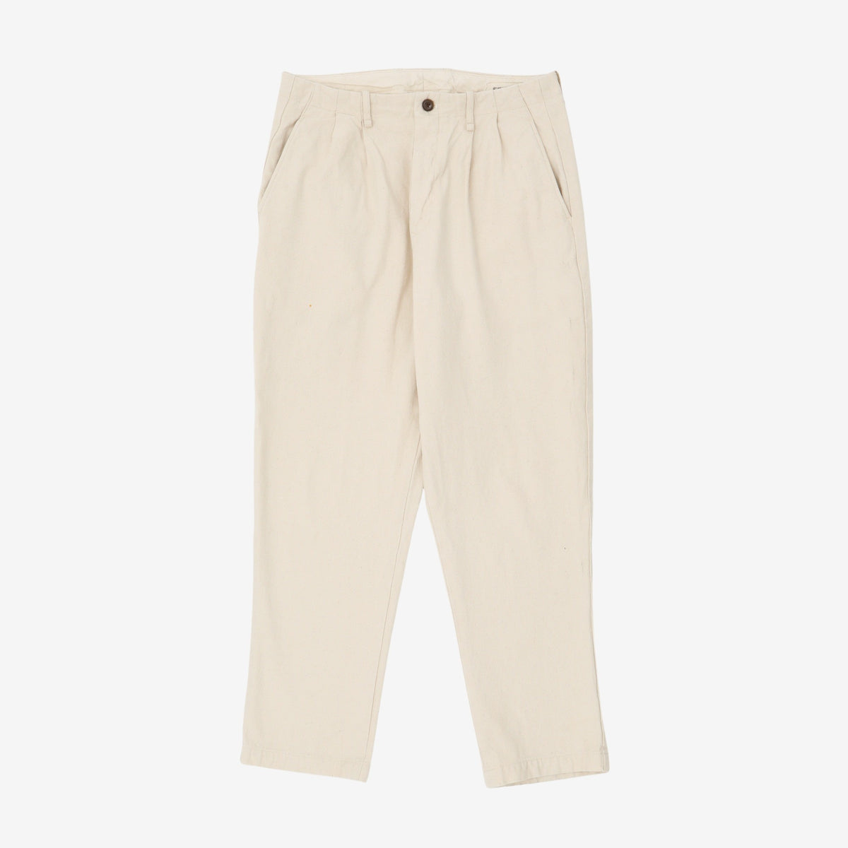 Canvas Tapered Trousers by Seuvas. Small stain on thigh, as pictured.