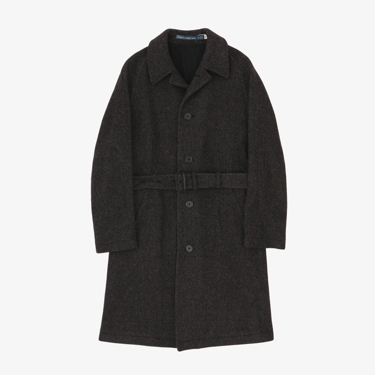 Belted Herringbone Balmacaan Coat by Polo Ralph Lauren.