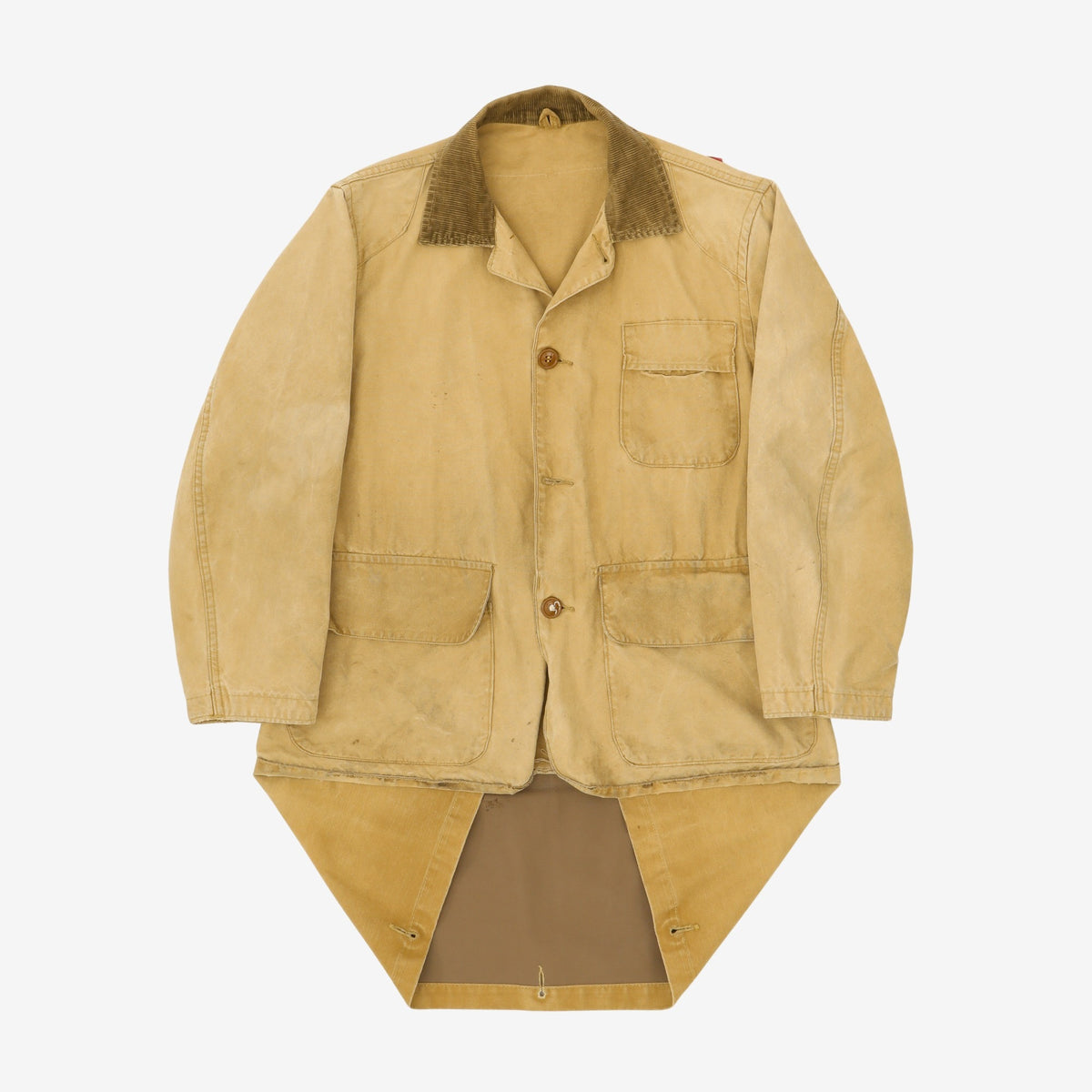 Vintage Red Patch Hunting Jacket by The Hettrick MFG. Thorough wear throughout, and top button missing, as pictured.