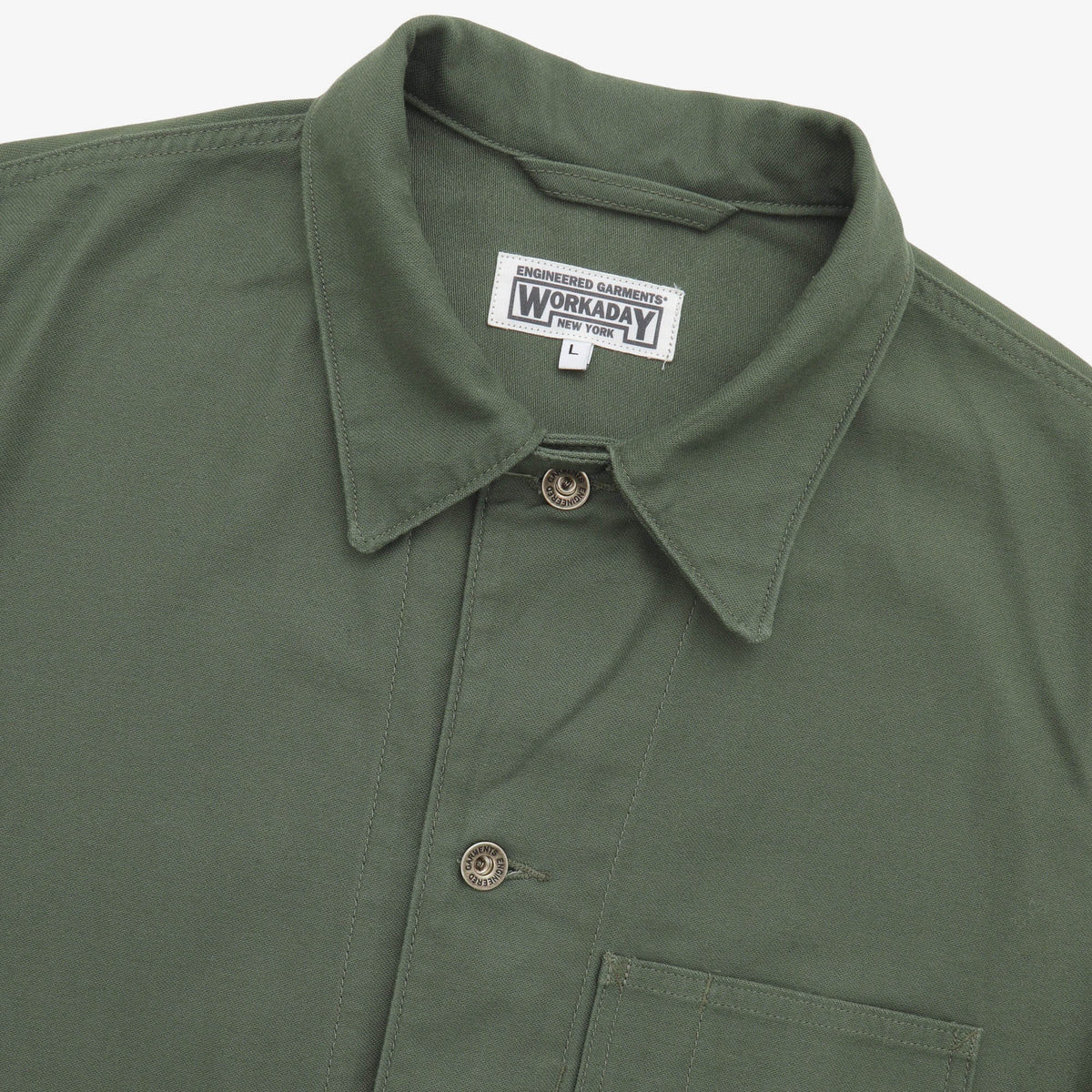 Work Jacket by Engineered Garments Workaday. Small faint stain on bottom pocket, as pictured.