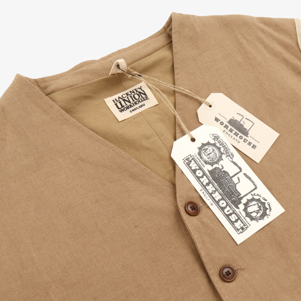 Originally inspired by a British rail, Victorian Porter Jacket - circa 1940. A comfortable collarless Jacket, with a sleeve that still remains tailored which has been cut with the curved arm shape which historically allowed the user to carry luggage.