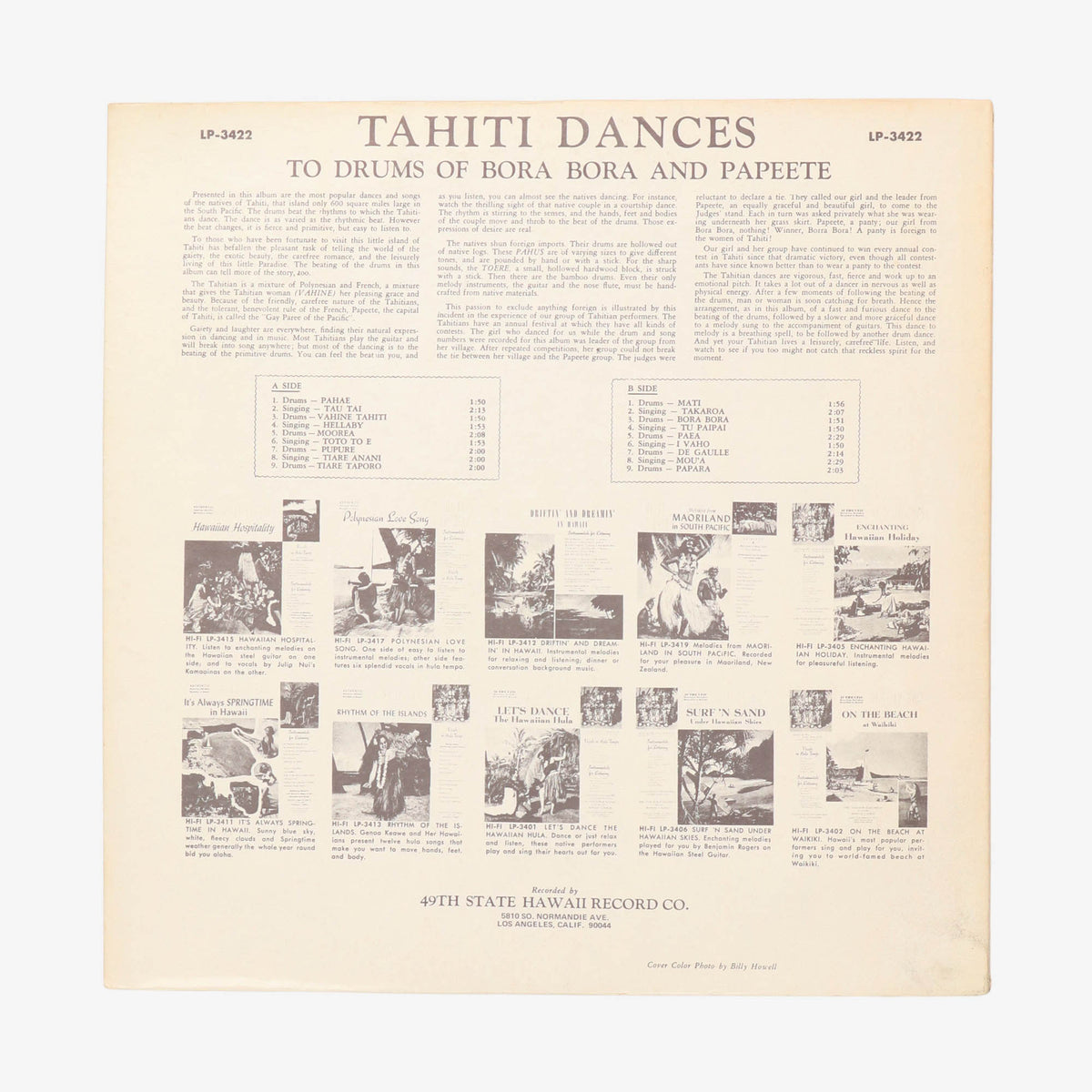 Vintage Hawaiian Tahiti Dances Record.