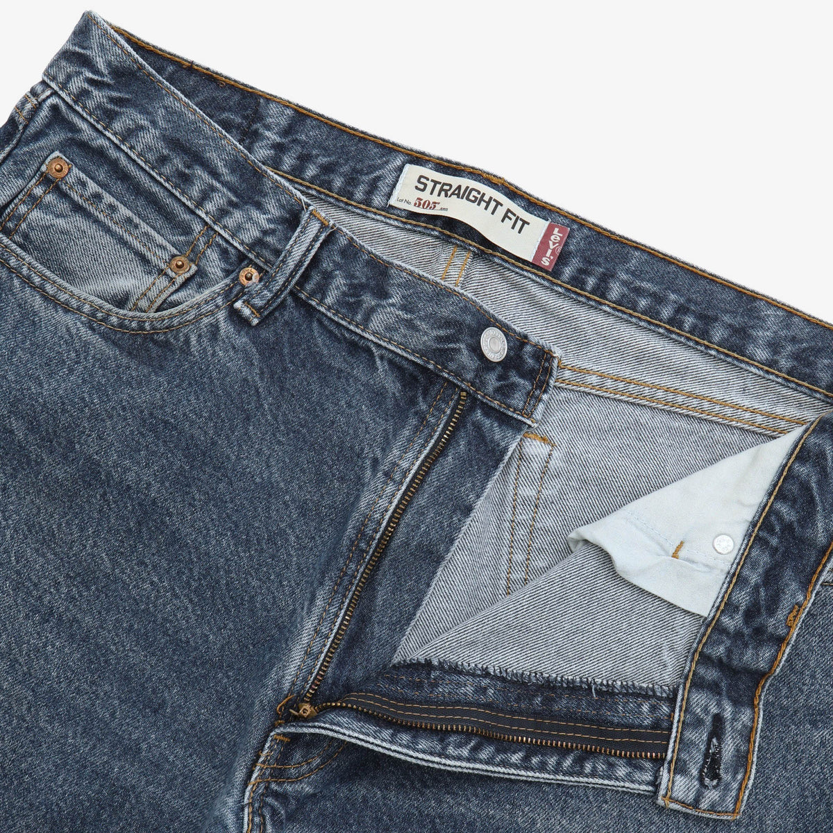 505 Straight Fit Denim Jeans by Levis.