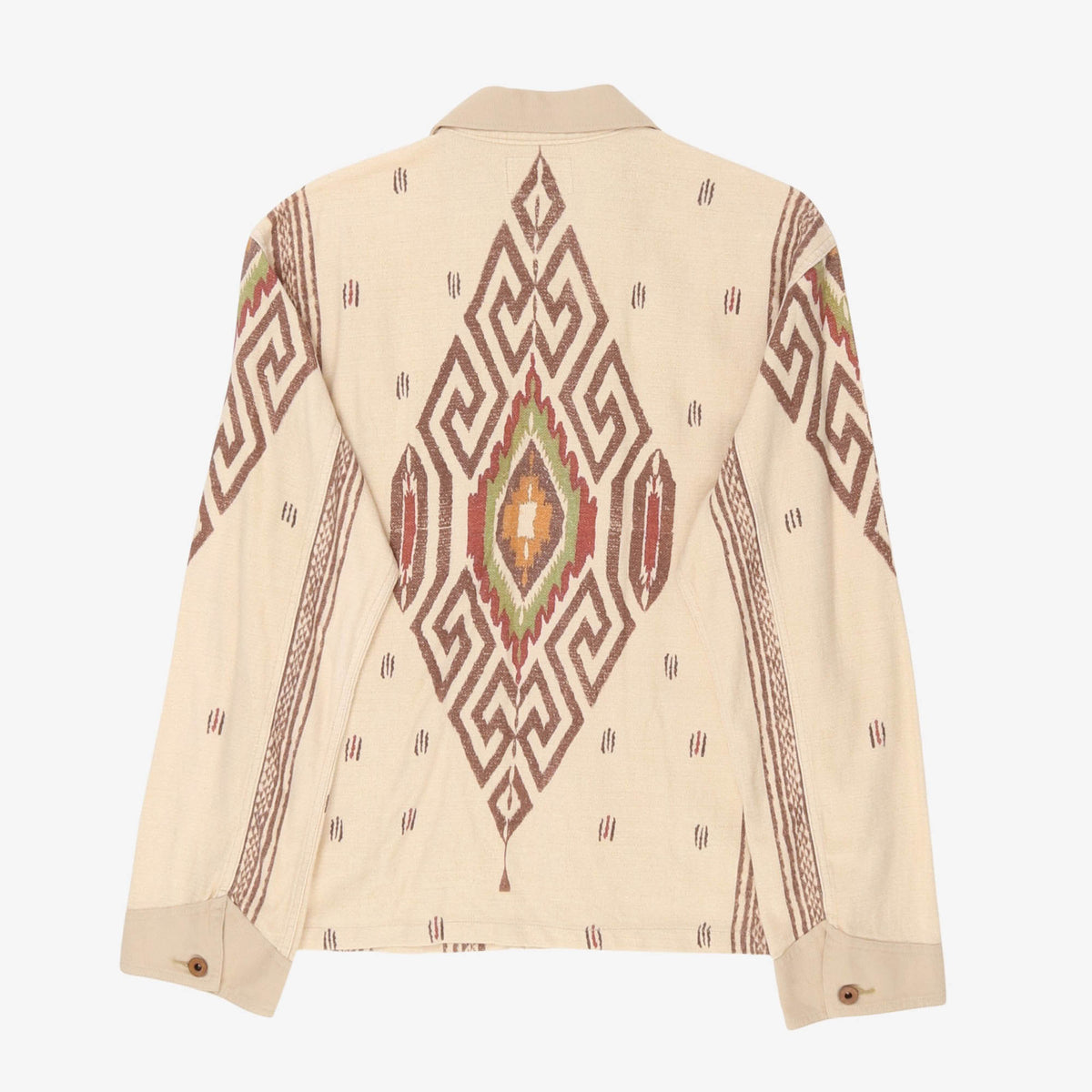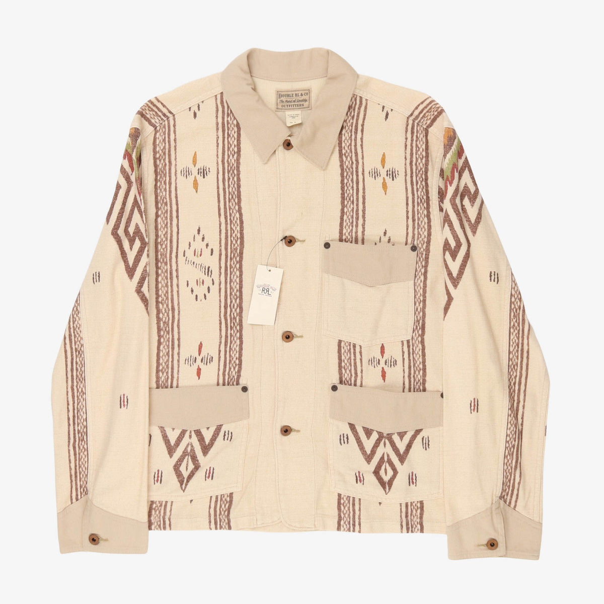 An amazing piece from the Double RL line. A cream colour way with a subtle aztec pattern. Cotton linen mix material, perfect as a shacket, overshirt or light jacket.