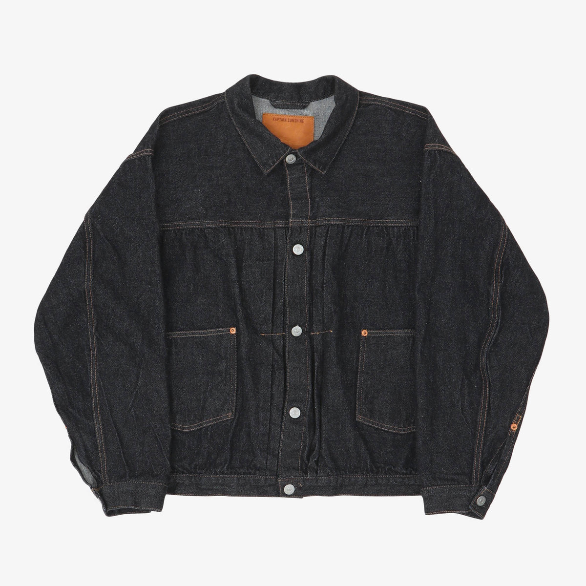 13.5oz Selvedge Denim Tracker 2P Jacket One Wash by Kaptain Sunshine. Cropped and wide fit, please refer to the size guide for measurements.