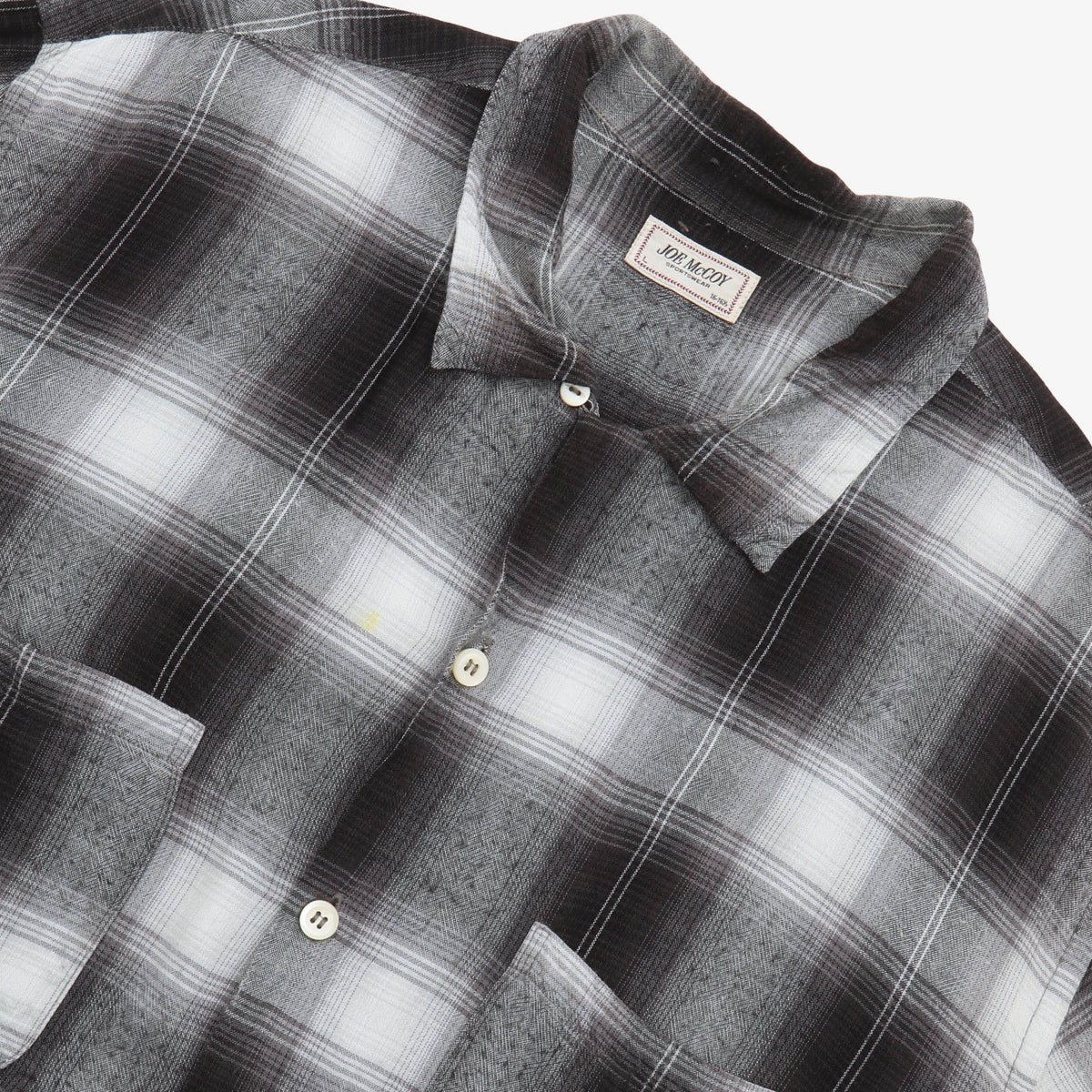Shadow Check Rayon Shirt by The Real McCoys. Small stain on front, as pictured.