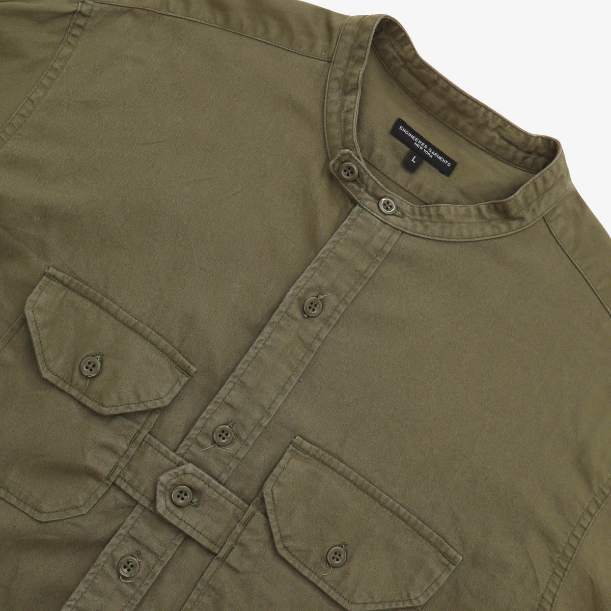 Band Collar Utility Shirt by Engineered Garments.