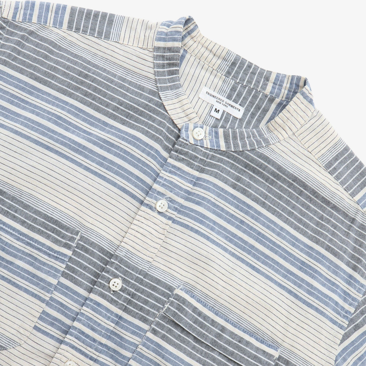 Collarless Stripe Shirt by Engineered Garments.