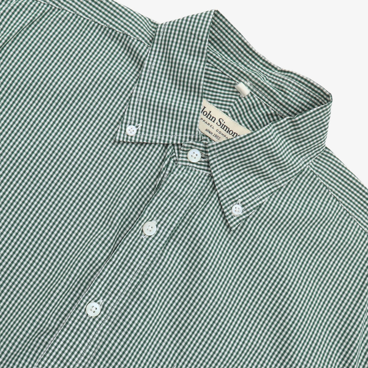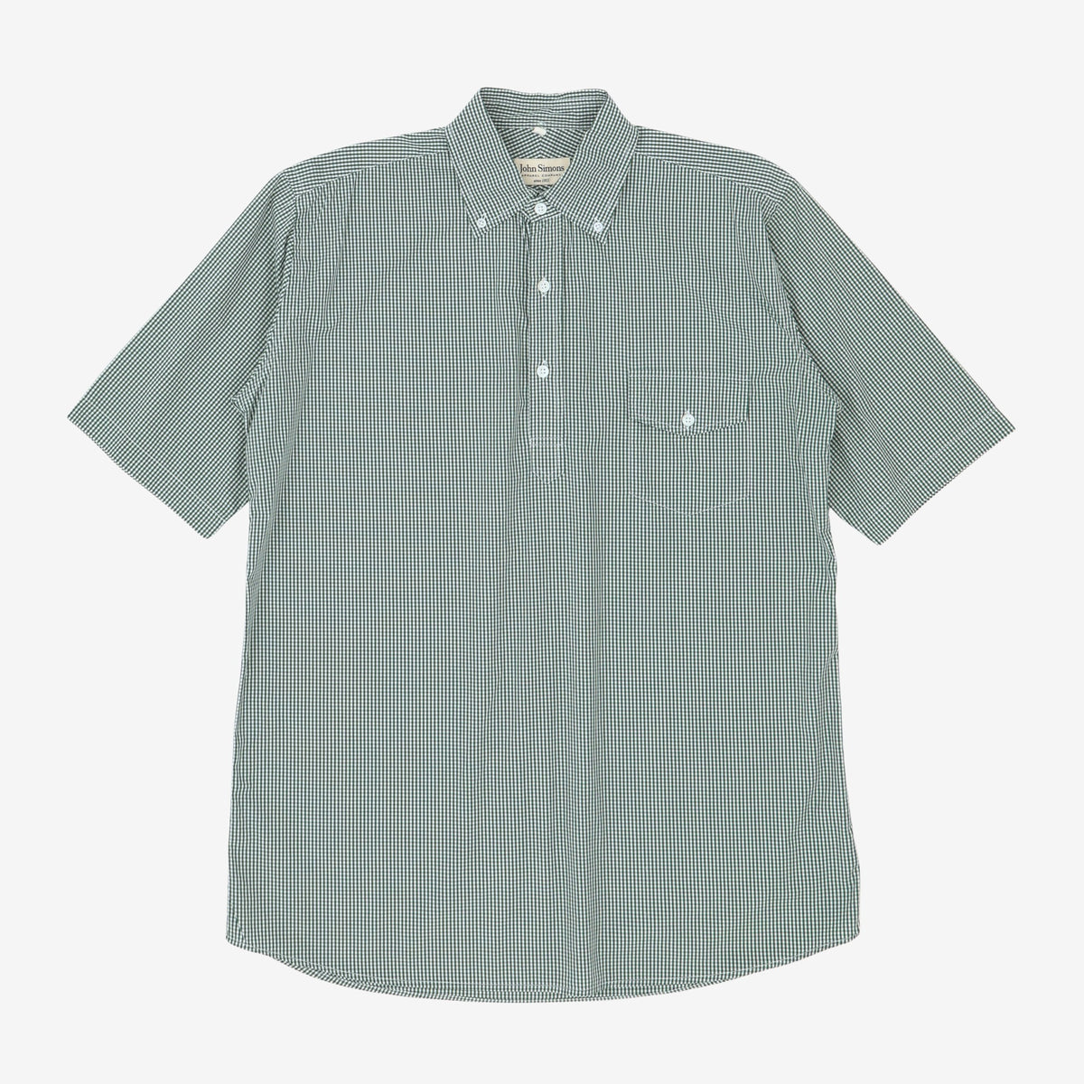SS Gingham Popover Shirt by John Simons. Small stain near hem, as pictured.