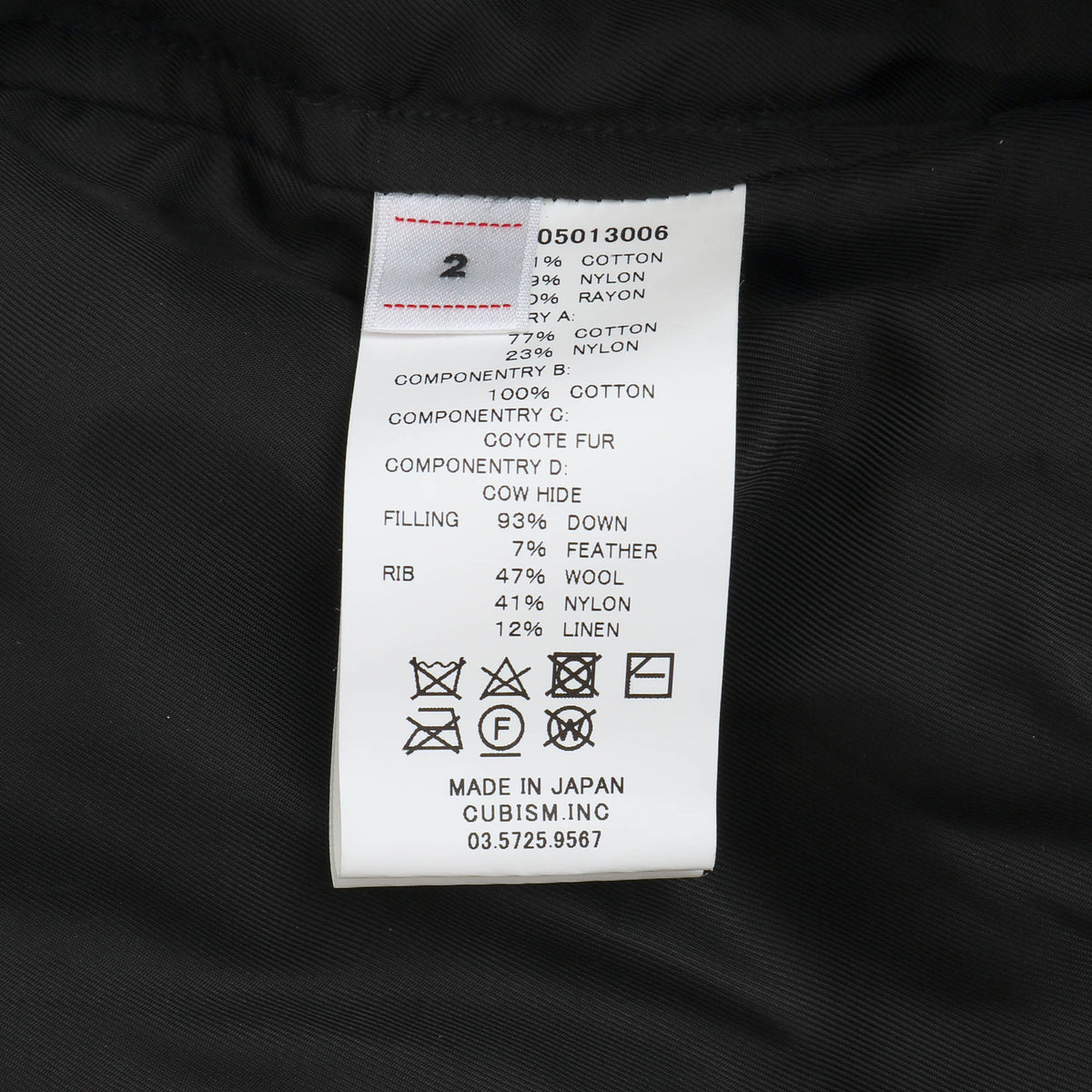 Shell 815 Cotton, 19% Nylon, Lining 100% Rayon