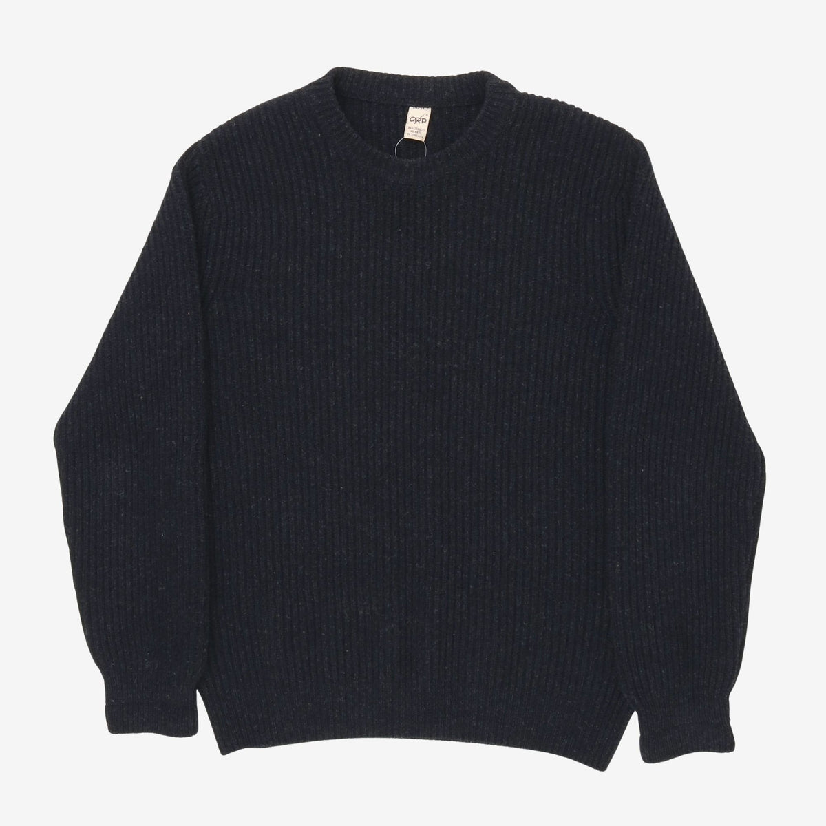 Lambswool Ribbed Crewneck Sweater by GRP. Holes at bottom of one sleeve, as pictured.