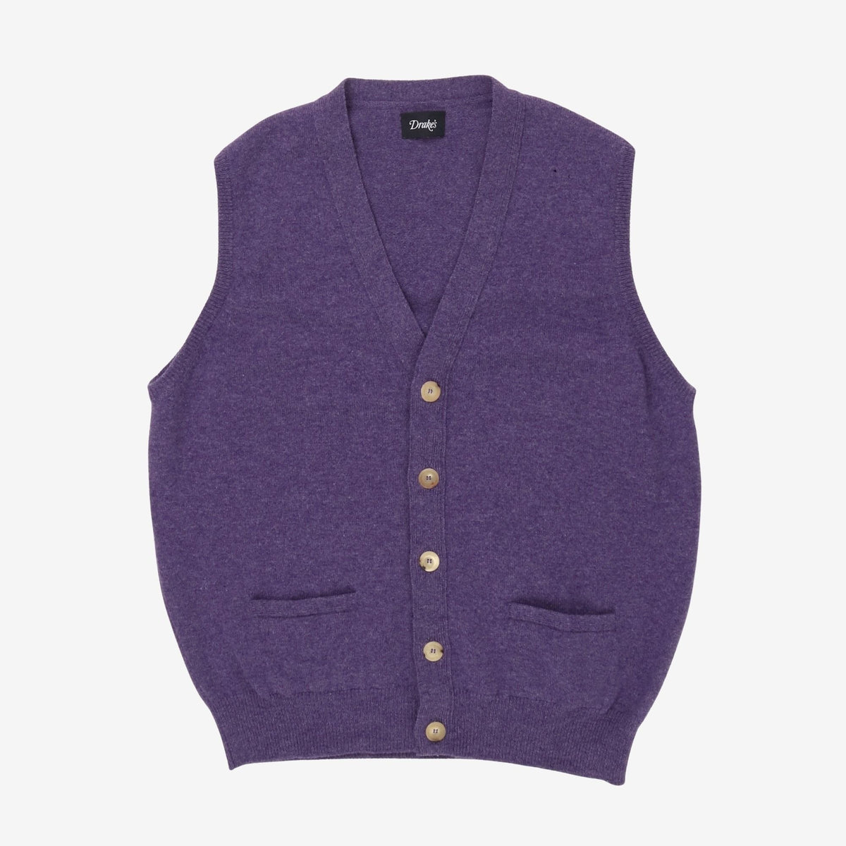 Lambswool Sleeveless Cardigan by Drakes. Two small holes, as pictured.