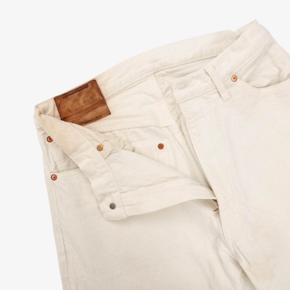 Relaxed Fit Selvedge Denim by Kaptain Sunshine. Light marks and stains, as pictured.