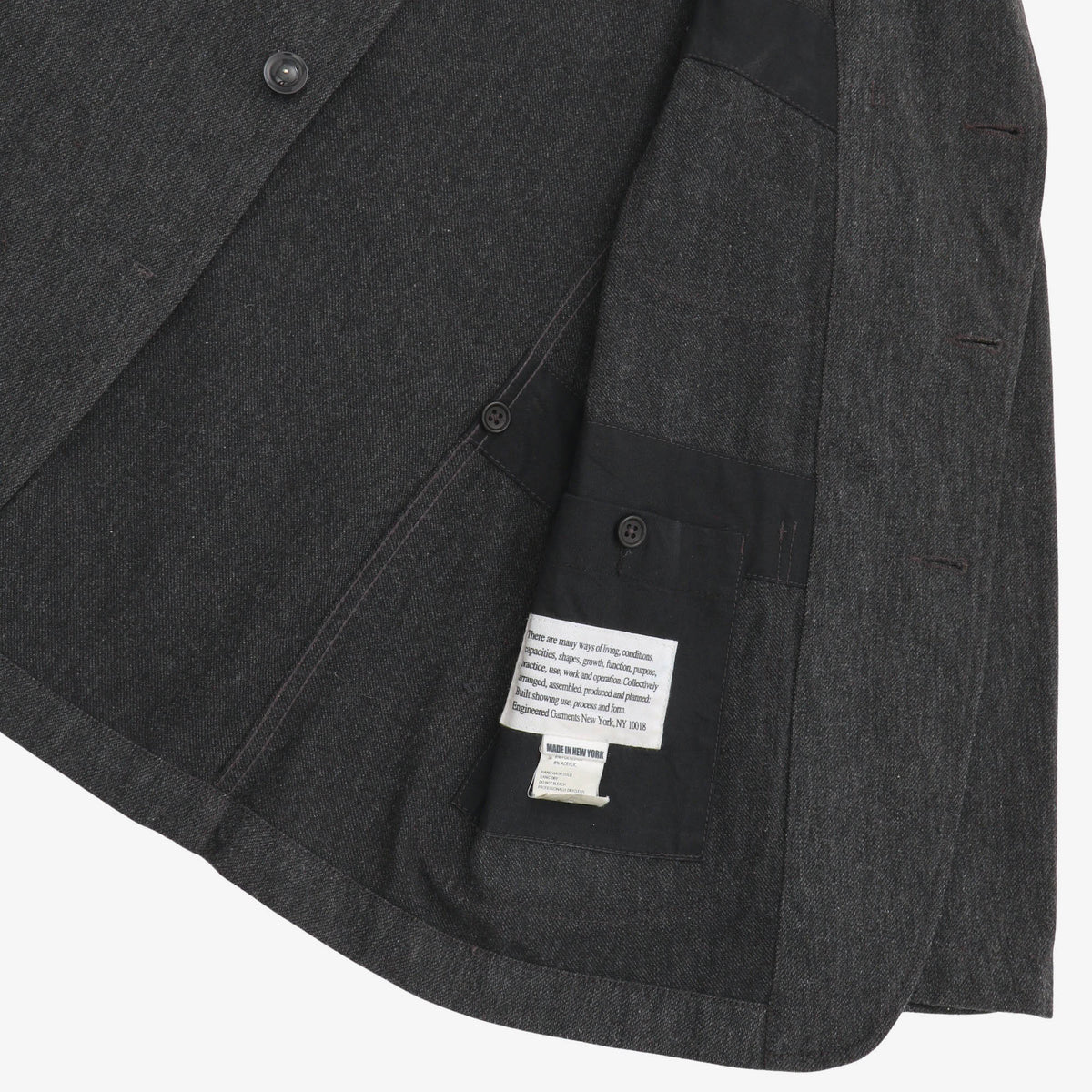Wool Blend Bedford Jacket by Engineered Garments. Front button missing, as pictured.
